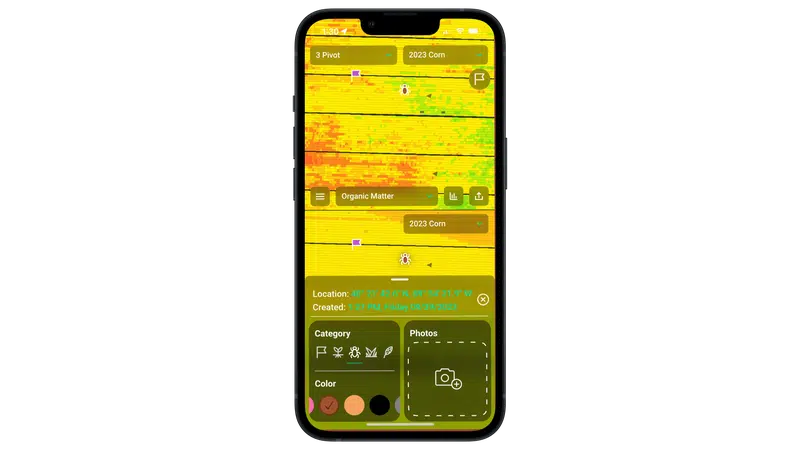 Take pictures and apply notes to geo-tagged spots in the field, all with the app on your smartphone-related to emergence, insects, weeds, and disease.