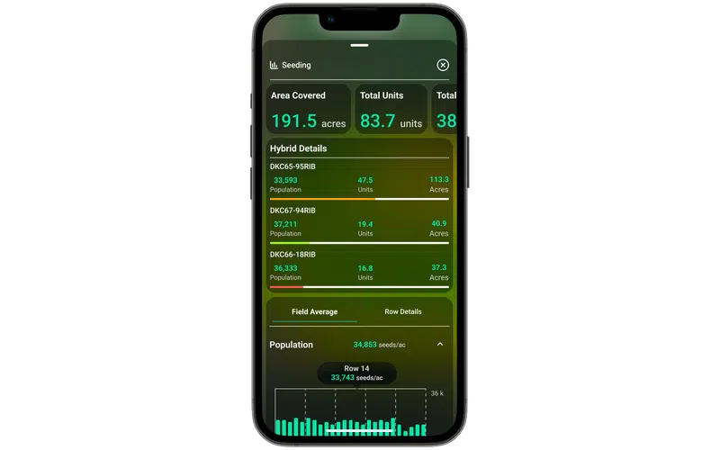 See a summary of population, units used, and acres covered, per hybrid.